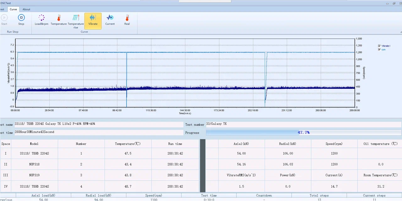 ТЕК-КОМ располагает специализированным стендом для измерения уровней вибрации подшипников качения с наружным диаметром от 62 до 160 мм. Измерения могут осуществляться как по виброскорости, так и по виброускорению, в зависимости от требований заказчиков.